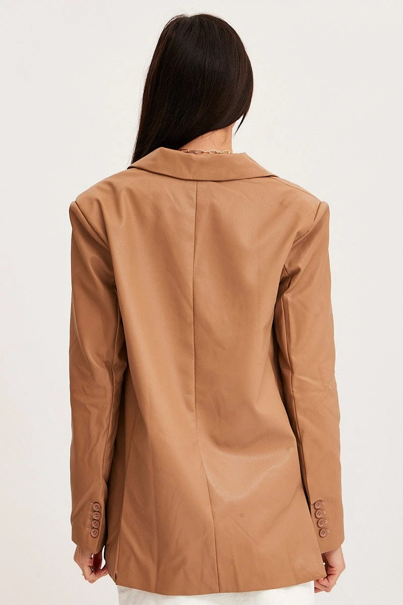 Features: Collared Neckline, Faux Pockets, Button Cuffed Sleeves, Pu Faux Leather