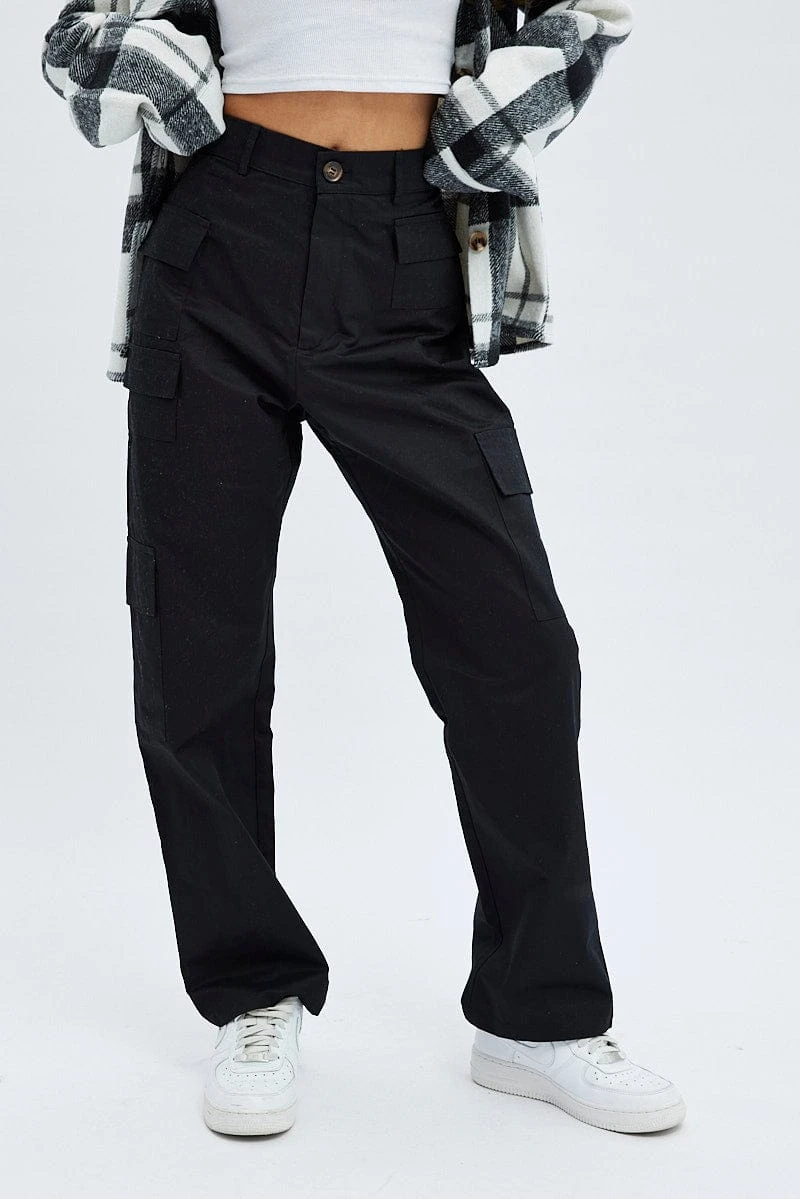 Black Cargo Pants High Rise