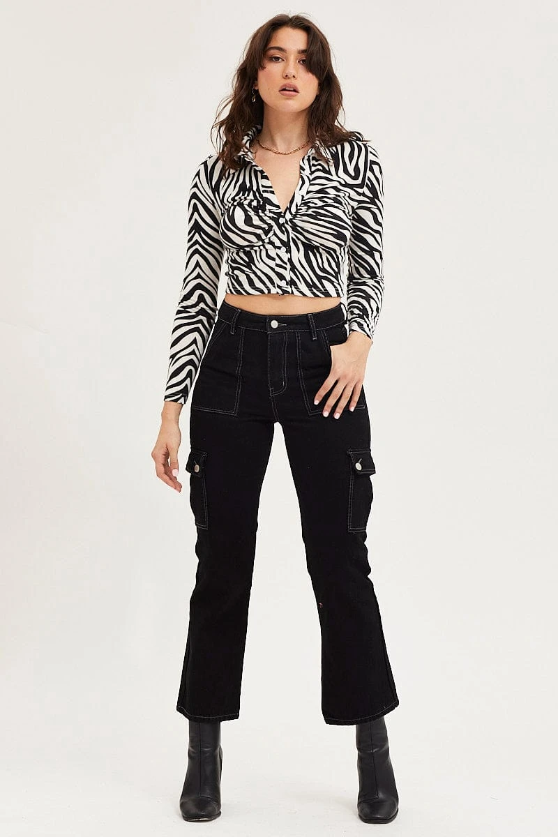 Features: Animal Print, Cropped, Ruched Detail, Collared