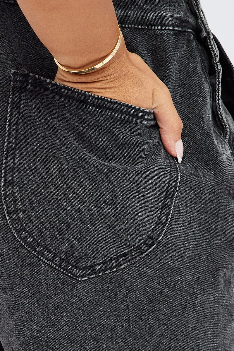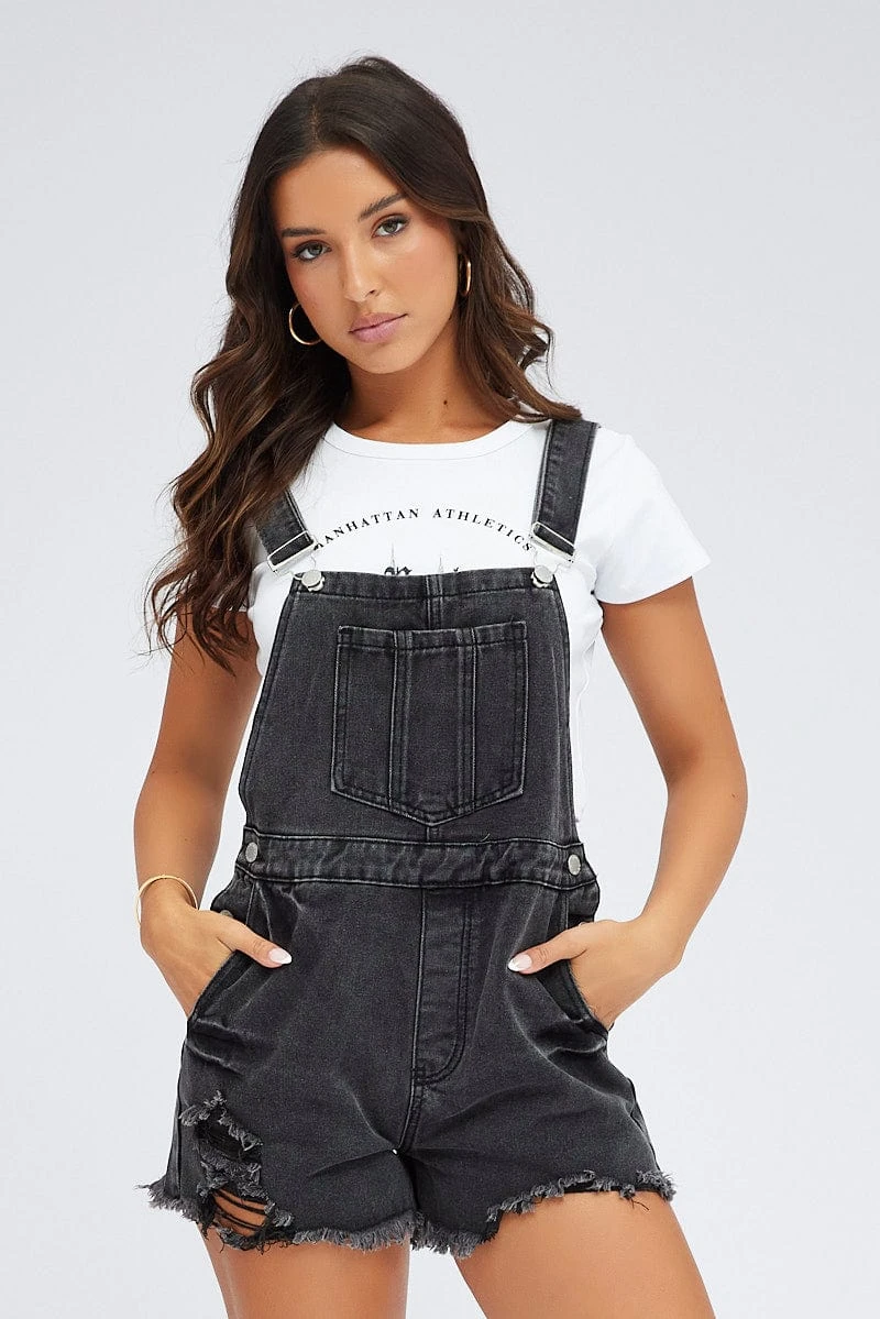 Black Short Overall Jeans