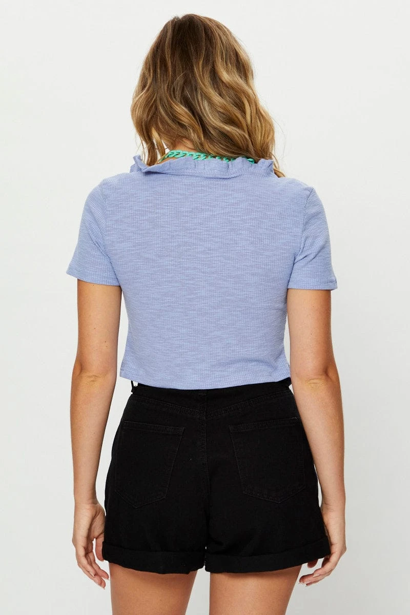 Features: Frill Hem, Ribbed Material, Cropped Length, Tie Front