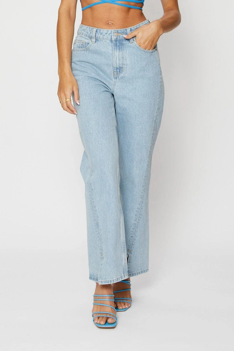 Features: Front Slit, High Rise, Cropped Hem, Light Wash
