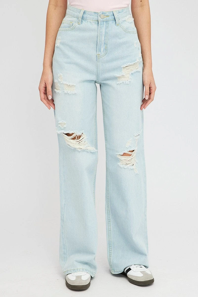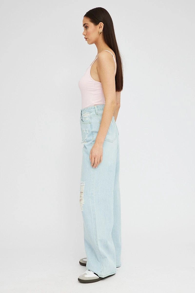 Denim Baggy Jeans High Rise Ripped