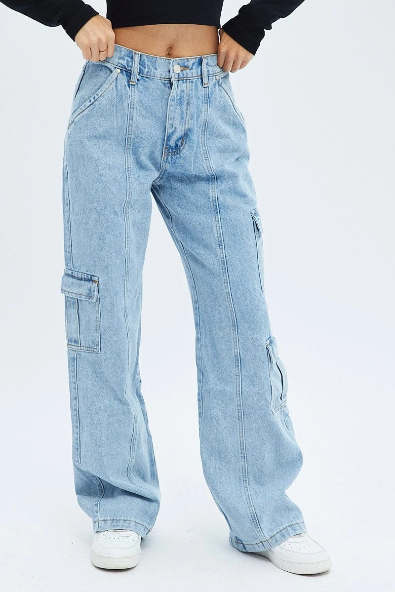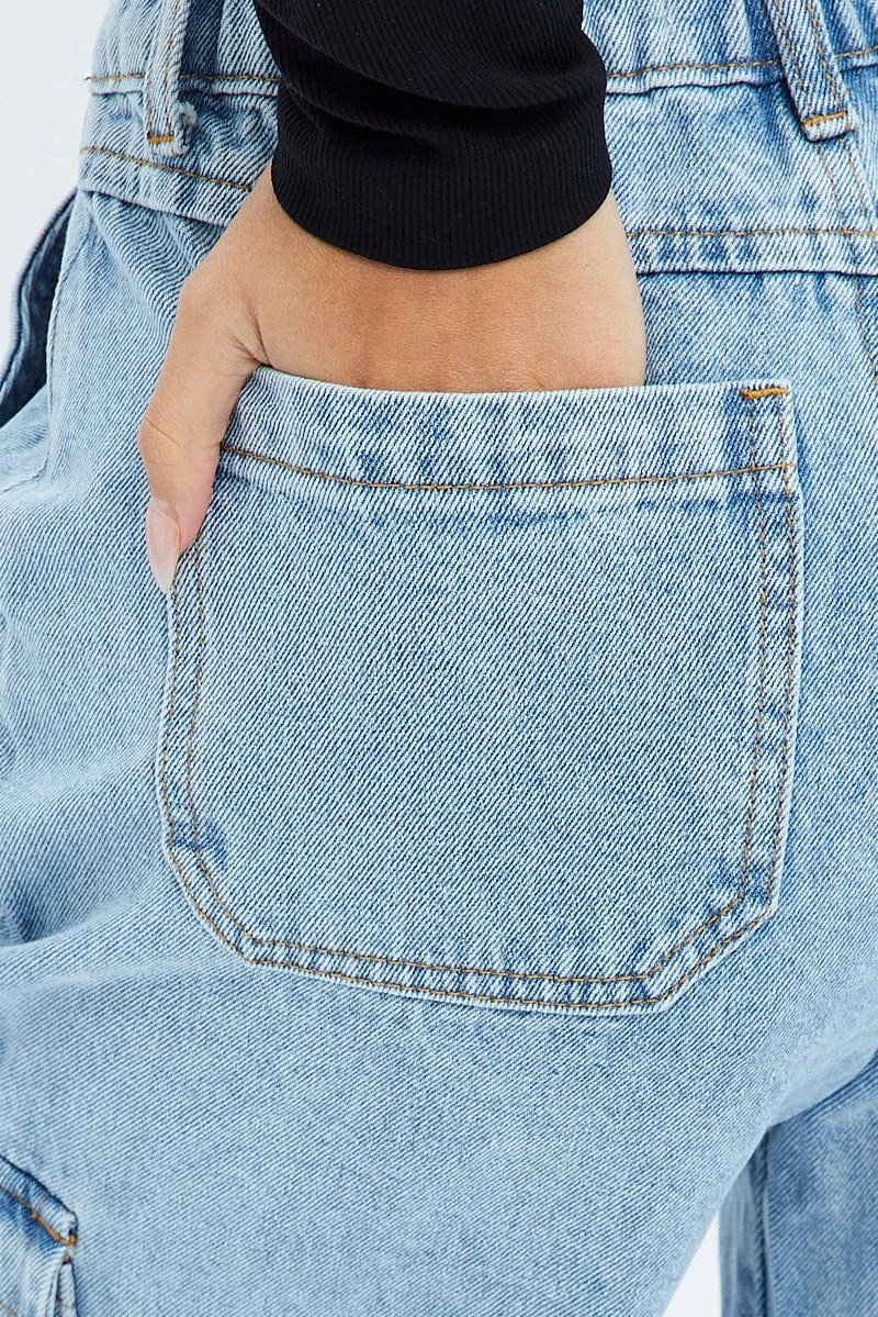 Denim Cargo Denim Jeans Mid Rise