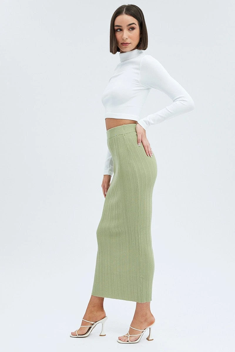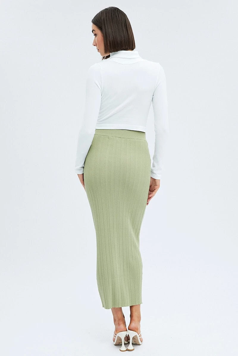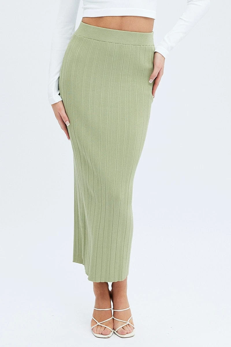 Green Knit Skirt High Rise Maxi