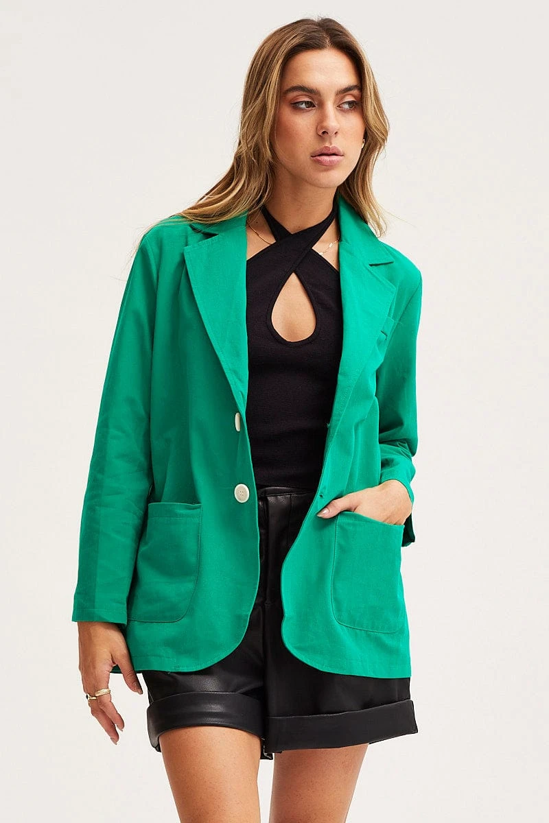 Green Workwear Jacket Long Sleeve Collared