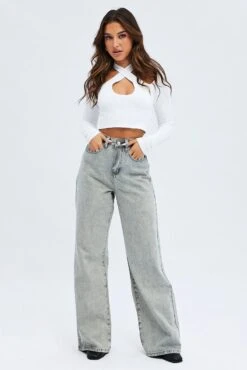 Grey Wide Leg Jean Mid Rise