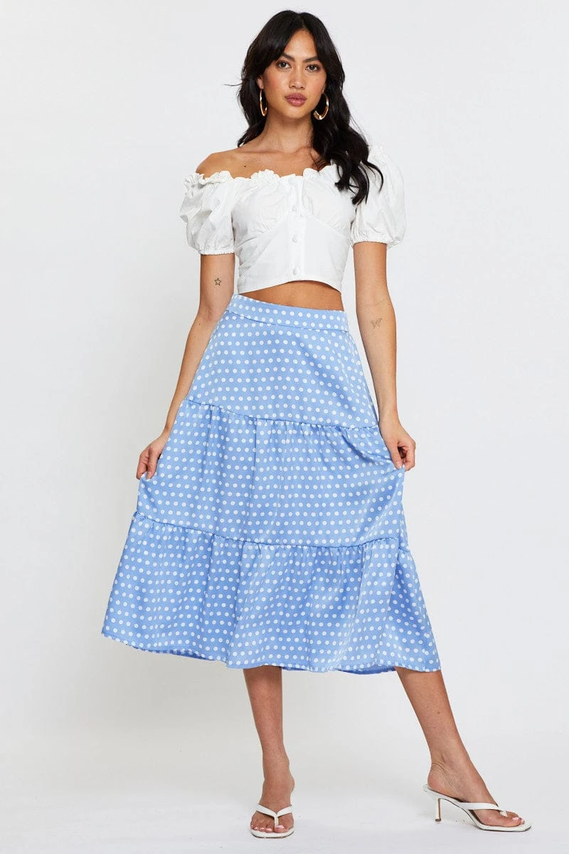 Features: Polka Dot Print, Midi Length, Elasticised Waistband, Satin Look