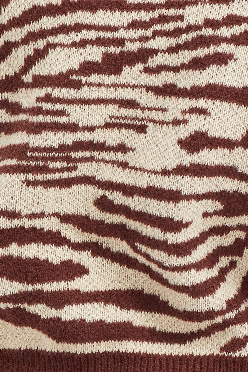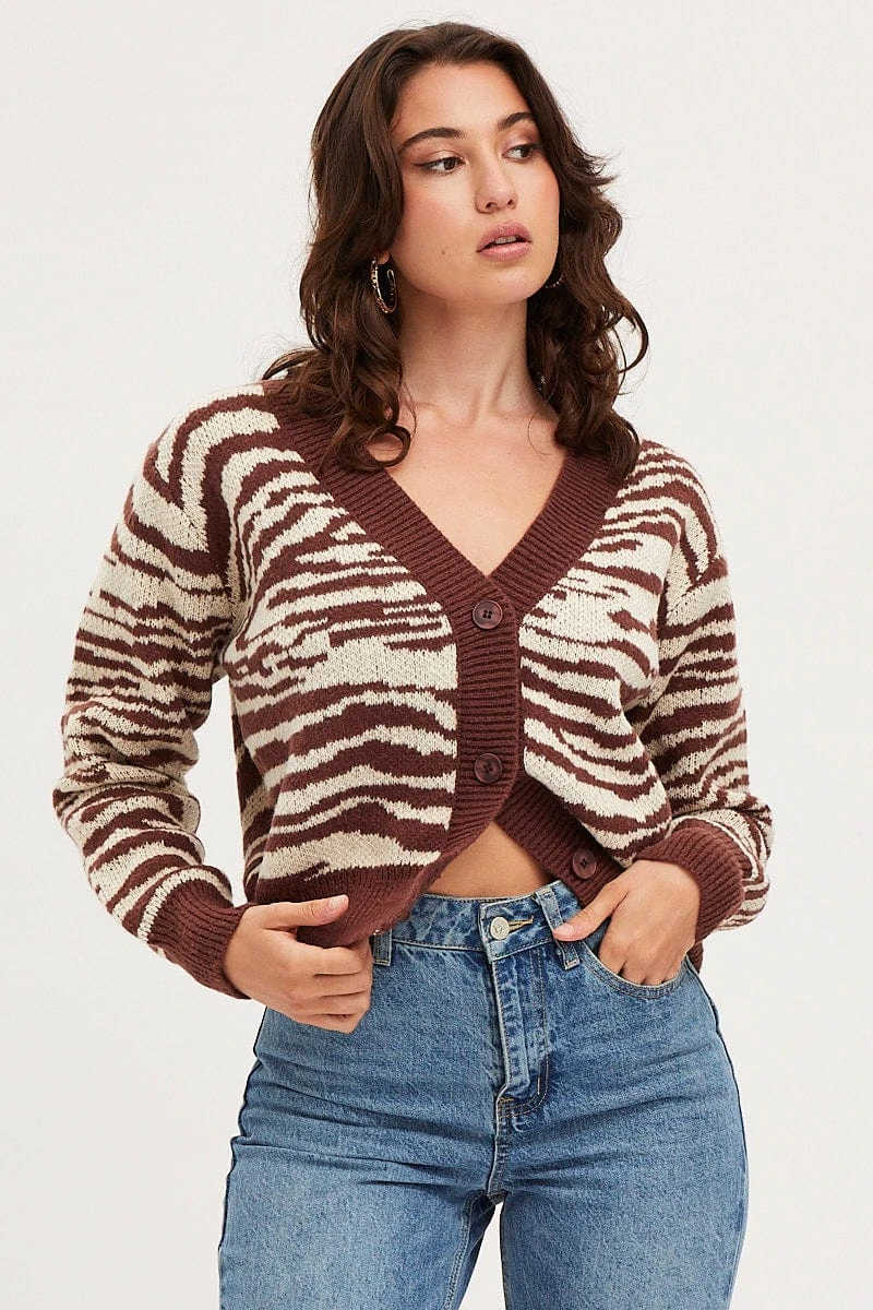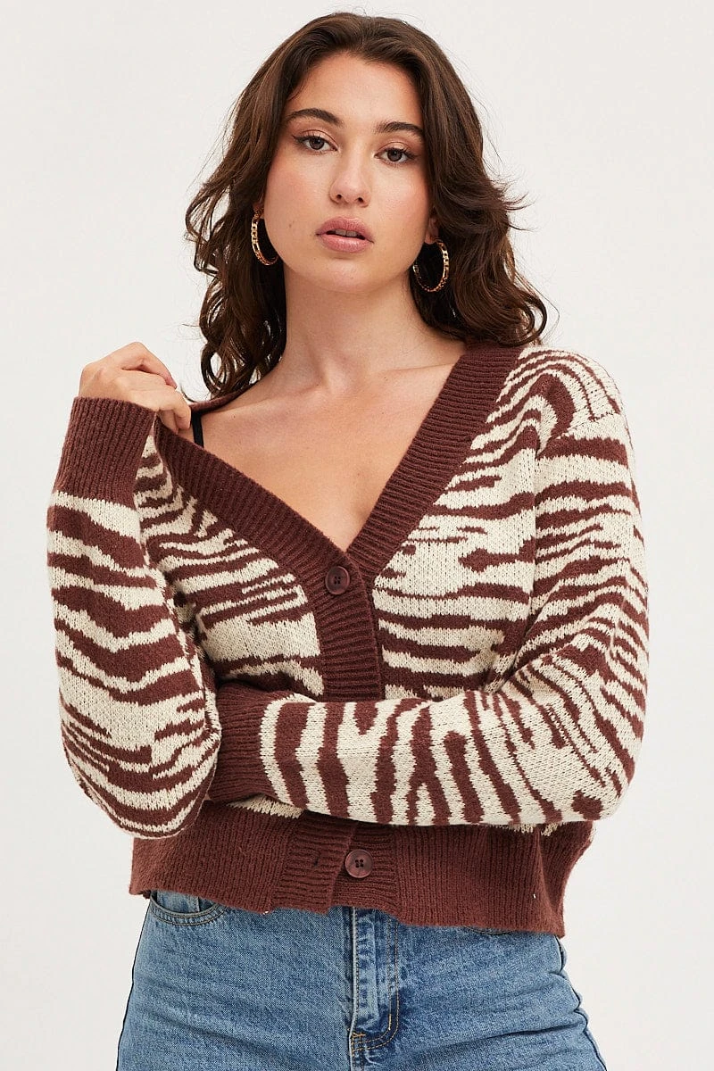 Features: Zebra Print, Long Sleeves, Large Buttons, Knitted