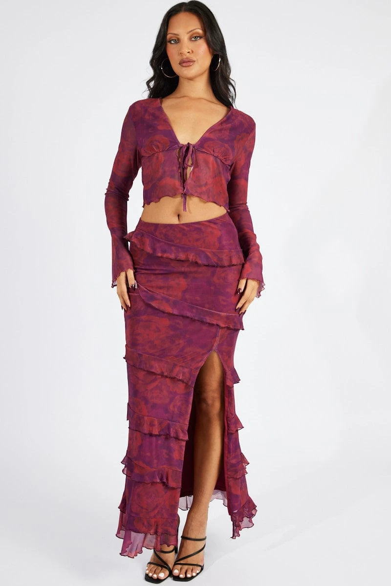 Red Floral Tie Up Cardigan Long Sleeve