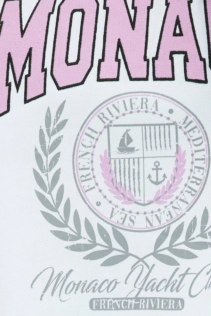 White Graphic Sweatshirt Long Sleeve Crew Neck