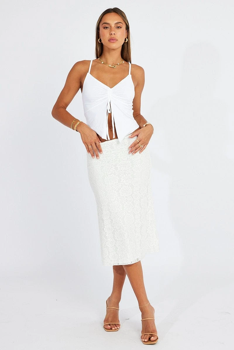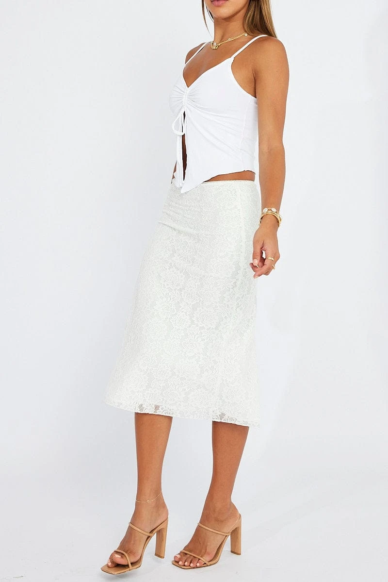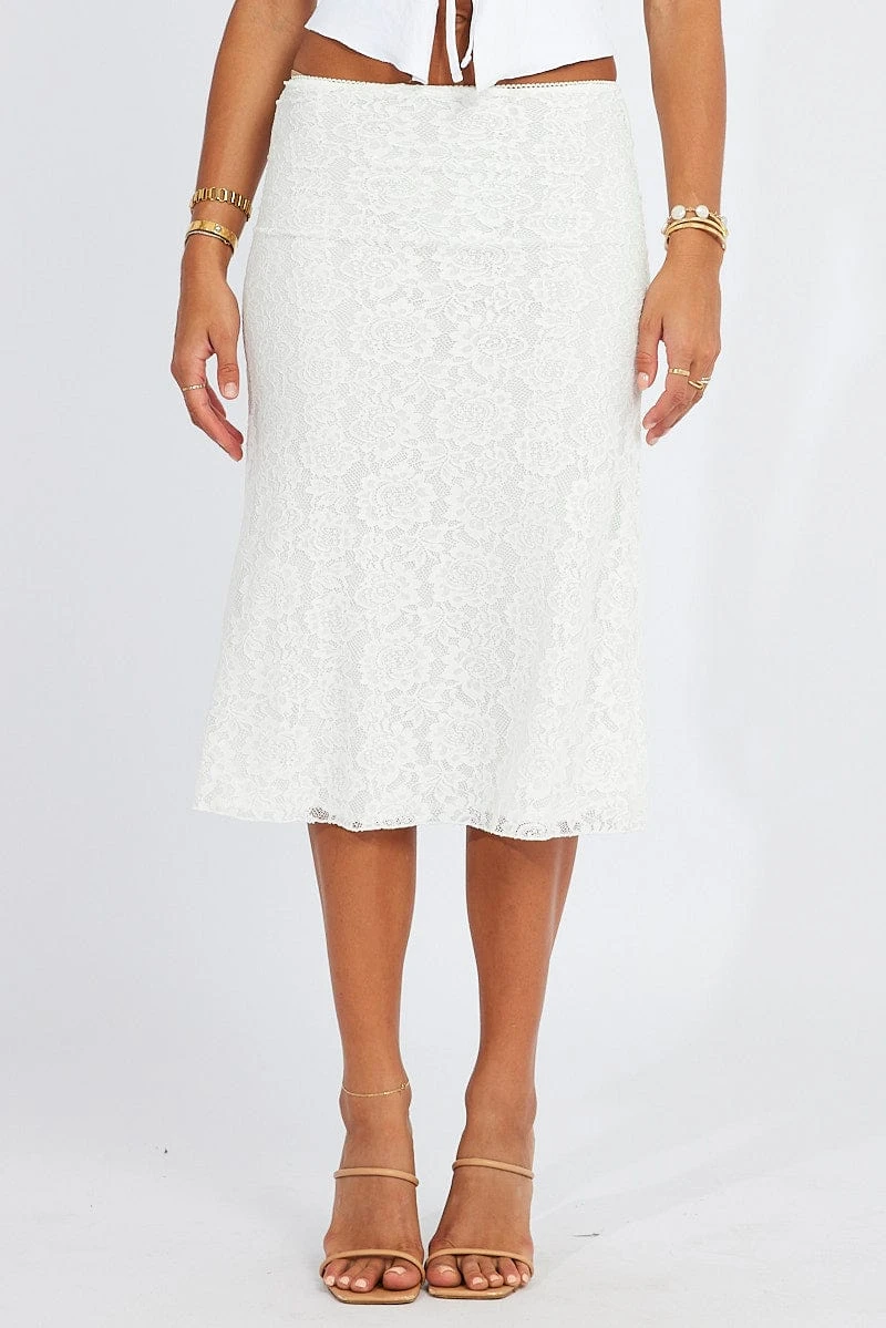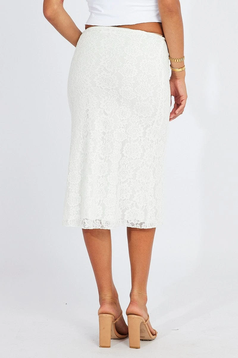 White Lace Skirt High Rise