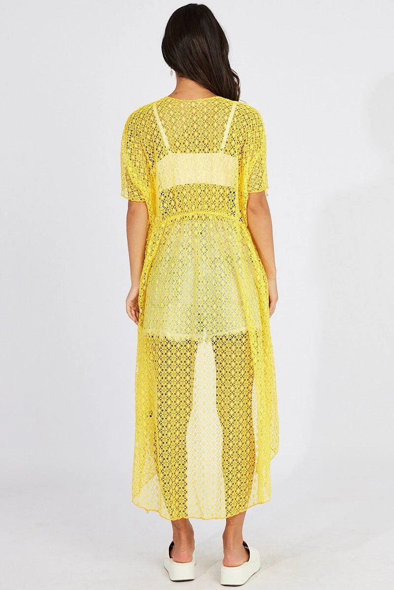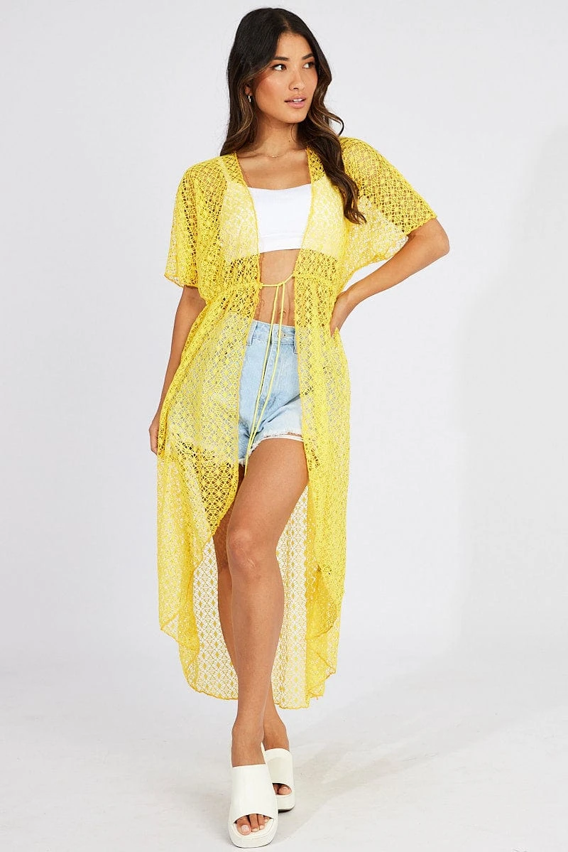 Yellow Crochet Cardigan Short Sleeve